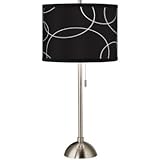 Add contemporary style and sleek simplicity to your home with this versatile table lamp. This design features a limited edition giclee shade printed on high quality canvas. The lamp comes with an on/off pull chain switch for easy lighting control. U.S. Patent # 7,347,593. Brushed Steel finish. Custom giclee shade. Takes one 100 watt bulb (not included). 28" high. Shade is 13 1/2" wide and 10" high.