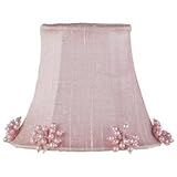 Dress up a chandelier with this beautiful set of clip-on shades. A pink silk outer is lined with matching cotton fabric. Pink faux pearl clusters add an extra touch of glamour. Recommended for use with 25 watt bulbs. Set of 3 shades. Pink silk outer with cotton liner. Faux pearl accents. White fitter. Clip-on style. 3" across the top, 5" across the bottom, 4 1/4" high.